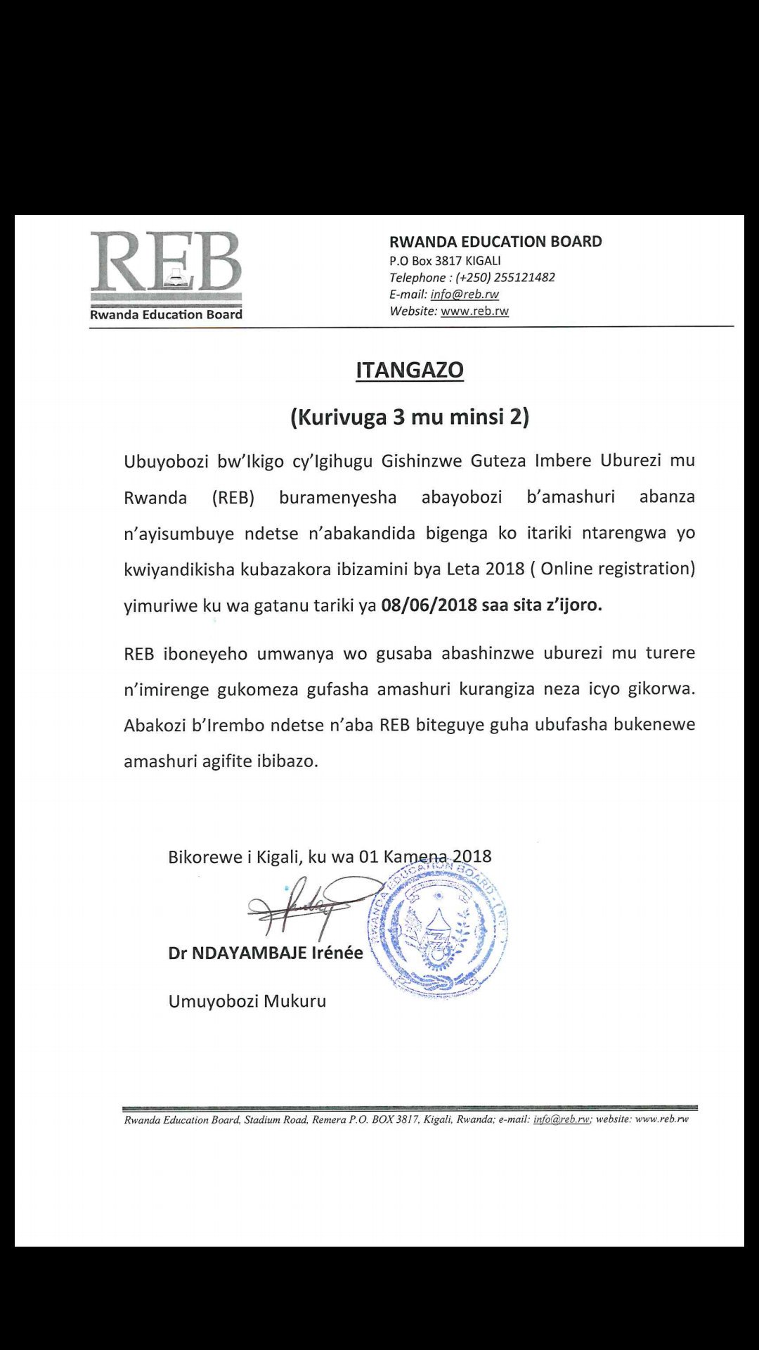 Rwanda Education Board On Twitter Itangazo Online Registration